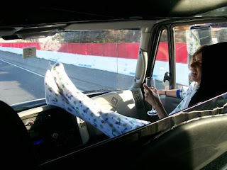 We boarded the bus to go back home. It was as nuts as you would imagine 20 people who have been wine tasting for hours to be. The pictures will give you a bit of an idea. And a party wouldn't be a party without a one piece suit! The purple suit came out a little later on.